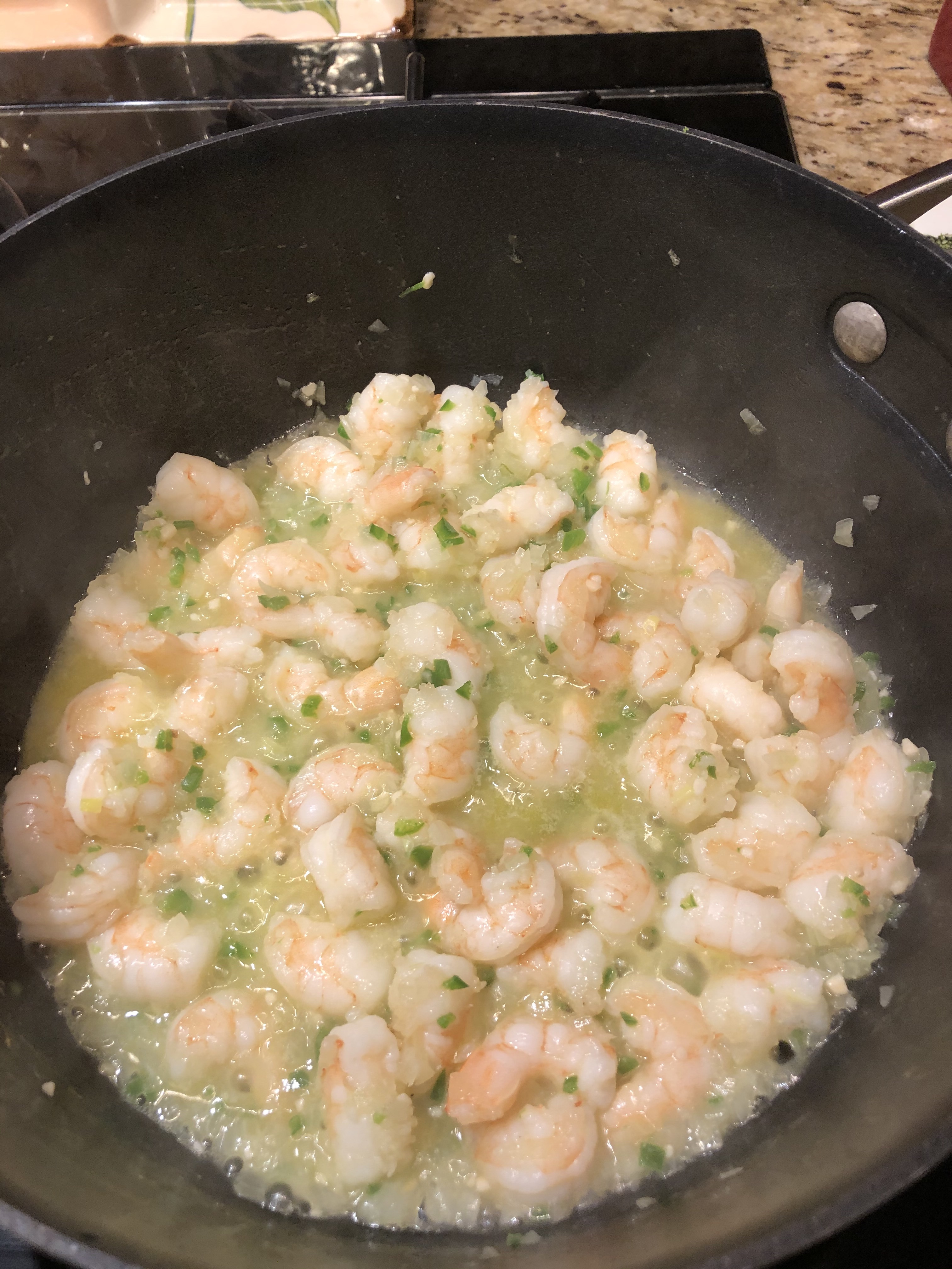 Sauté, stirring constantly for about 5 minutes or until shrimp just turn pink.
