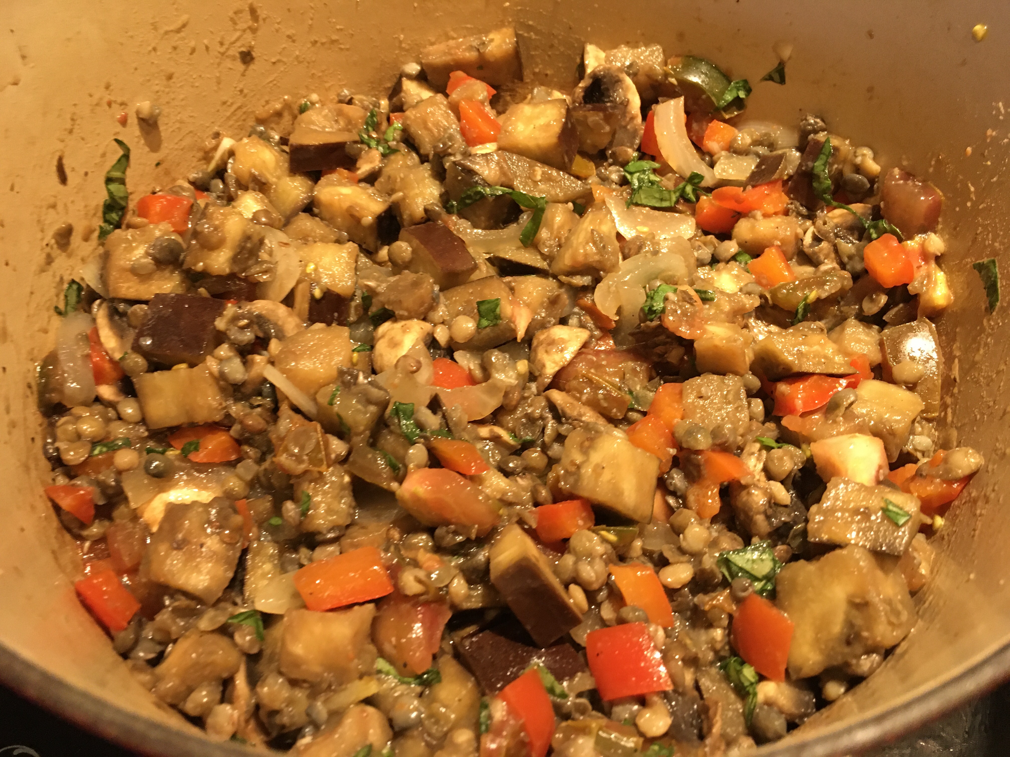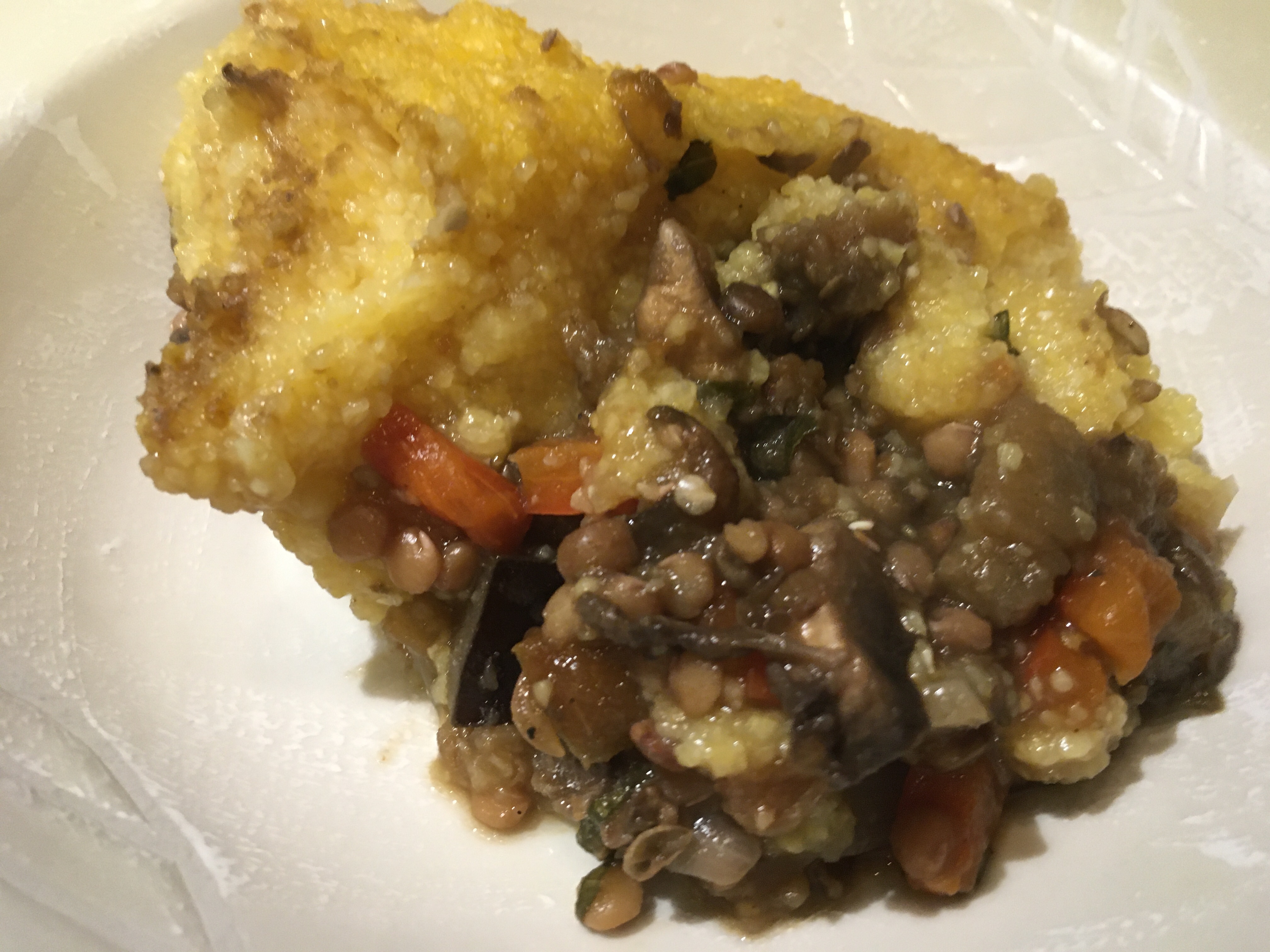 Spoon the polenta over the vegetable mixture.