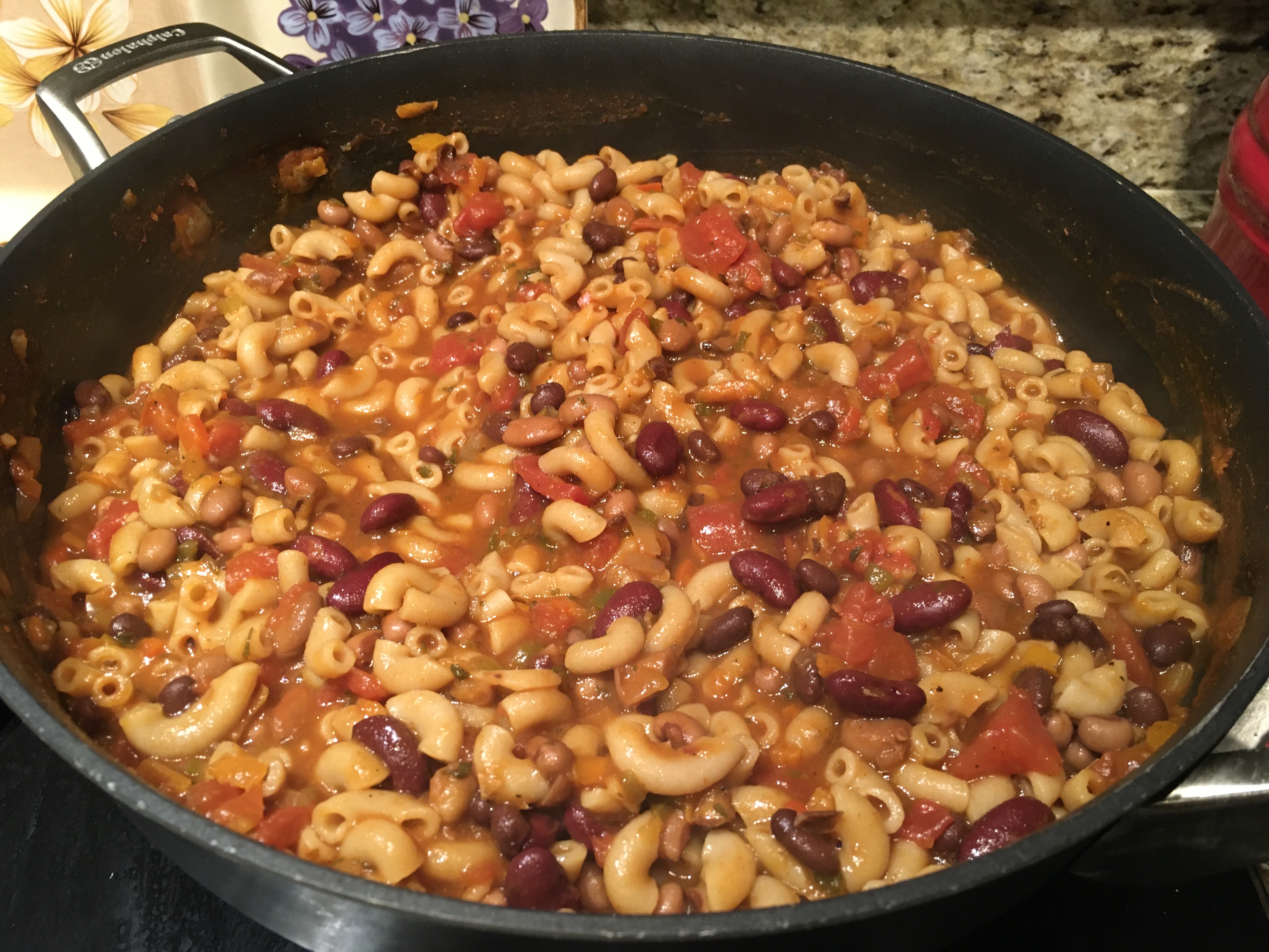 Once heated, add in pasta stirring well and cover. Cook for 15 minutes or until pasta is tender.