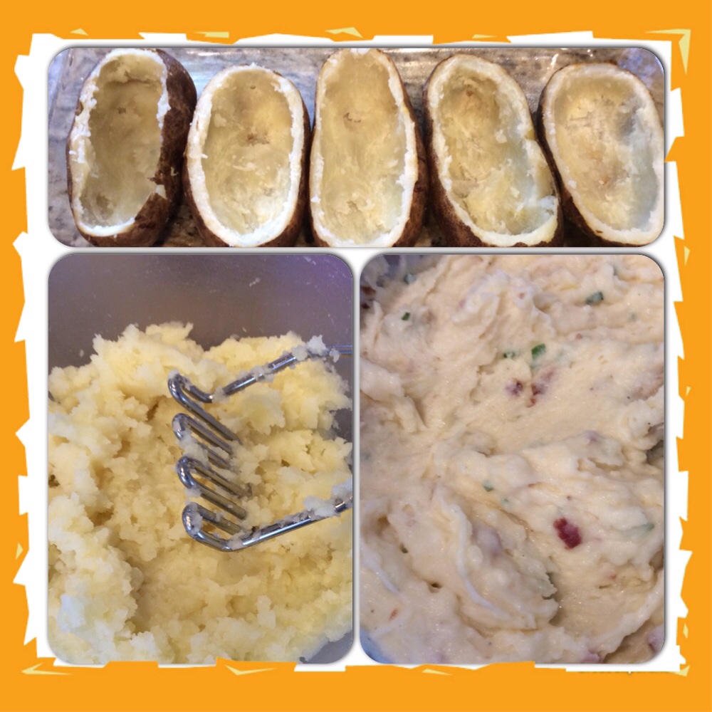 Twice baked potatoes…so ’80s but it was the very first dish I ever learned how to make and it was the very first dish I taught my daughter, Ashleigh, to make on her own….No, not gourmet, but delicious? For sure! Hubby is grillling some steaks tonight, the kids are home (yes, they are adults but still kids to me) and this is the perfect side dish!