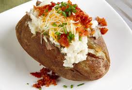 The perfect baked potato has crispy, golden skin on the outside and a steamy, fluffy texture on the inside! To create this bit of perfection simply wash your potatoes well. Dry them and prick tiny holes using a fork time (hence, they won’t explode). Rub some olive oil and kosher salt over them generously and place either directly on a baking sheet in the oven at 400 degrees. Cook for one approximately one hour depending on the size of the potato.