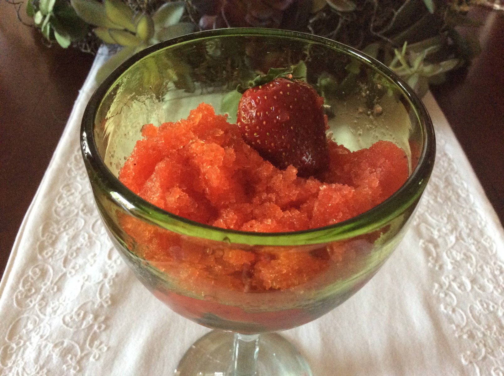 Scrape the ice with a fork until slushy, then freeze until firm, about 2 more hours.