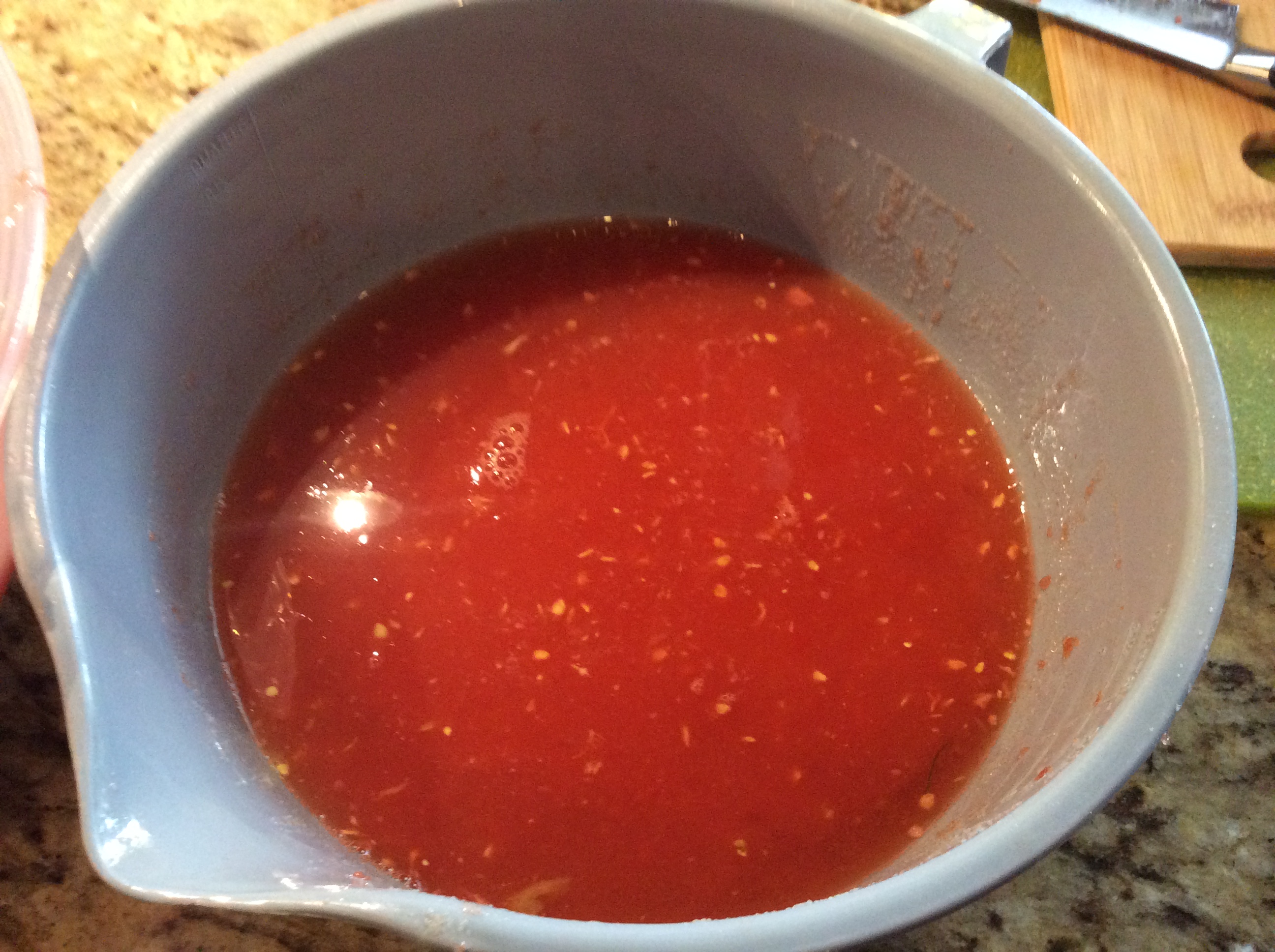 First, my original recipe calls for Roma tomatoes and that is what I generally prefer to use when canning salsa. That being said, my garden is plentiful with other types of tomatoes right now (currently Early Girls and Celebrity varieties) and these tomatoes are also delicious to use in canning. But unlike Roma tomatoes, they are far juicier and and aren’t packed with as much tomato pulp so it takes more tomatoes to get the same quantity. So for every 8-10 Roma tomatoes used in the recipe, you would need approximately 22-24 small-medium size tomatoes. Most importantly, if you aren’t using Romas, YOU MUST DRAIN THE JUICE or you will end up with a very runny salsa! (FYI: The juice is super delicious and I always keep it in the fridge to drink fresh or make into Bloody Mary’s.)