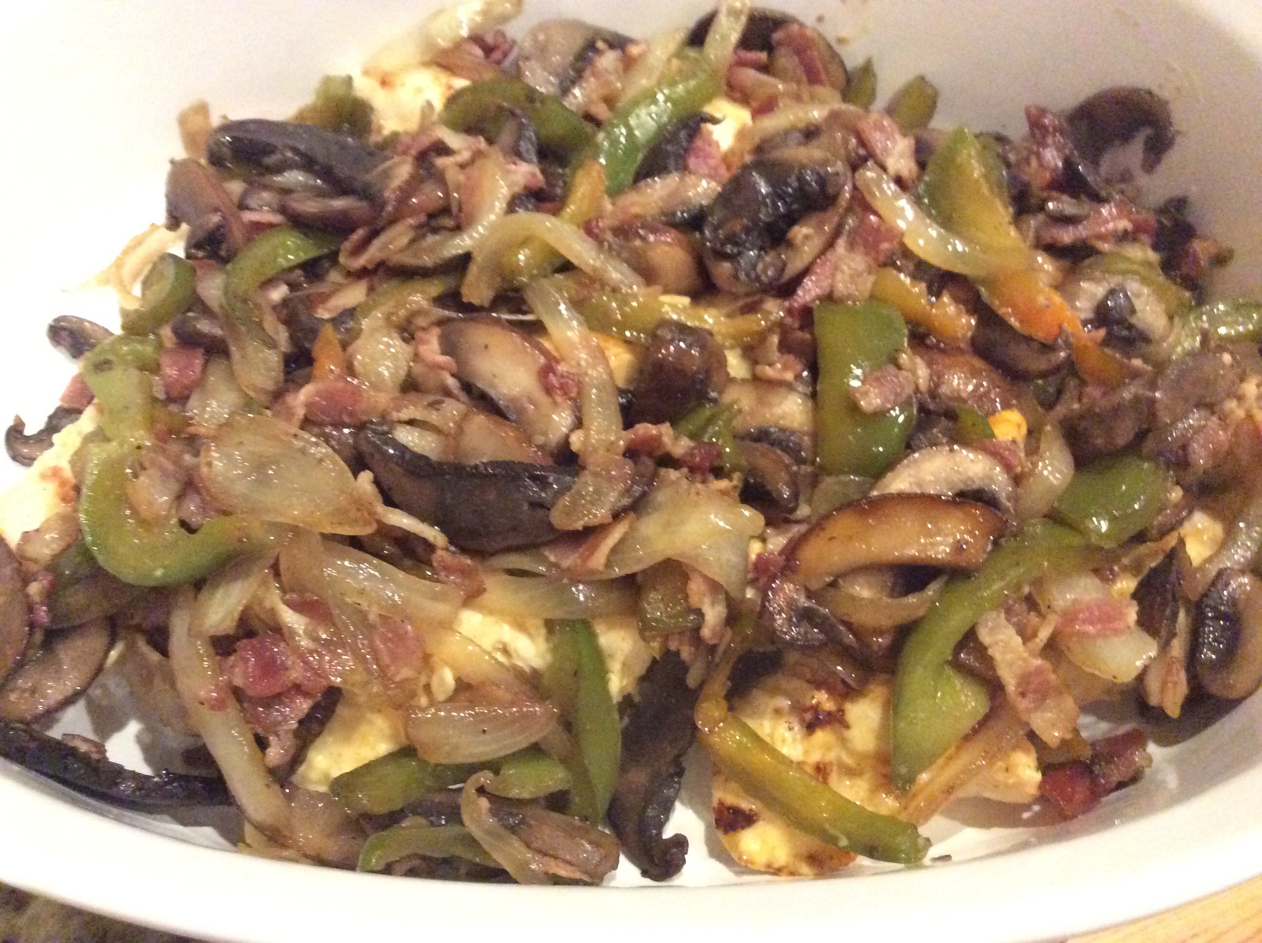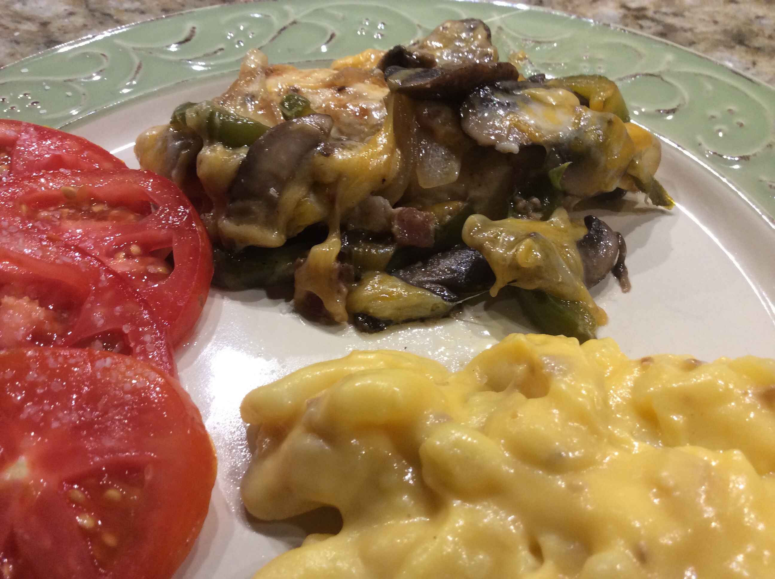 My Chicken And Vegetable Bake all came to fruition one day when I didn’t feel like running to the grocery store but wanted something more than just take-out. After scrounging around in my kitchen, I found that I had some onions, a green pepper from the garden, and some mushrooms. I also found some chicken cutlets in the freezer and I thought for sure I could do something with this! What I call Chef Frankie’s Chicken and Vegetable Bake was born!