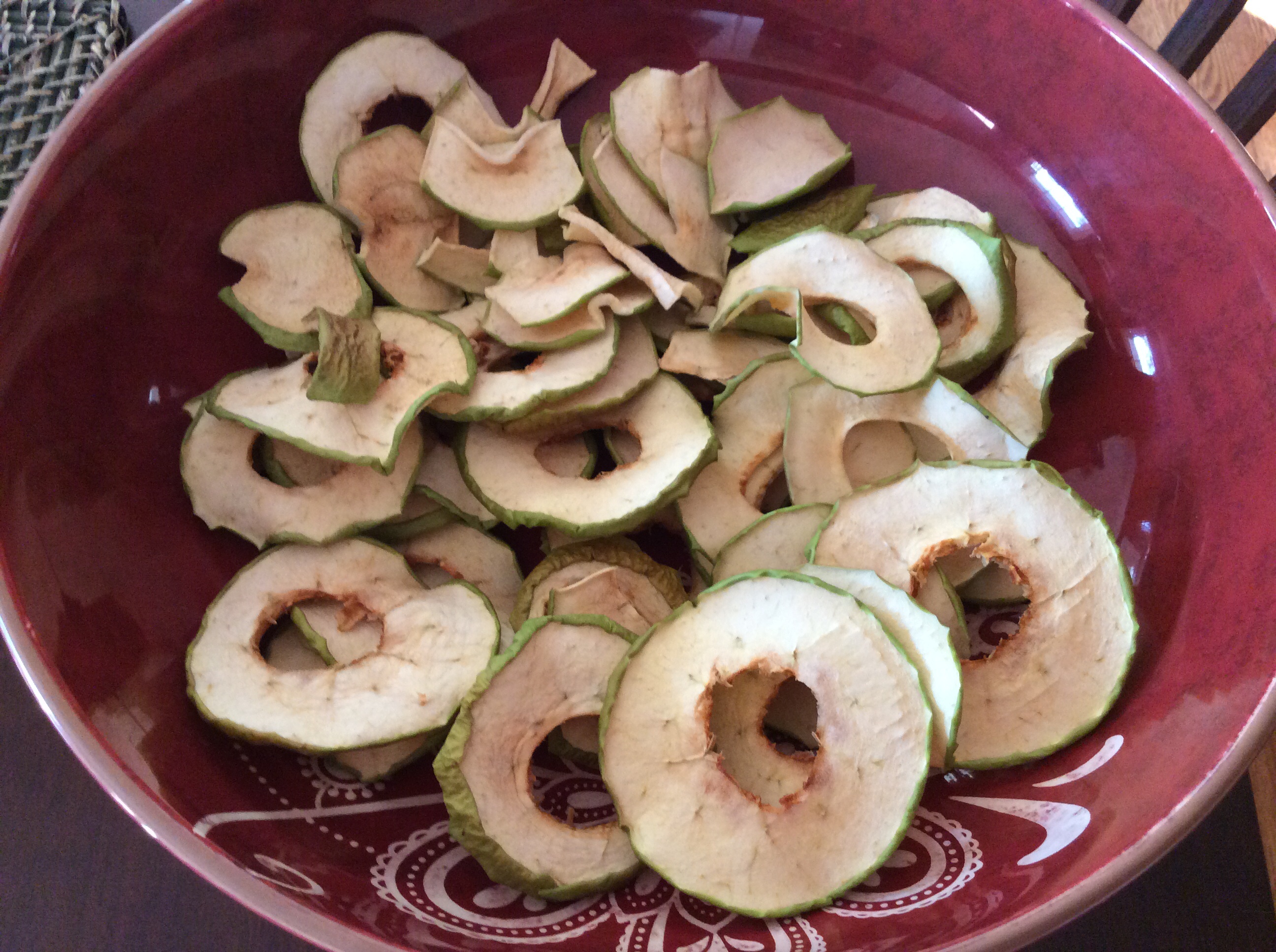 Fruits: Our first fruit dehydration project was apple chips! We did them plain using Granny Smith apples but there are endless ways to use various fruits and seasonings to create all kinds of culinary delights!