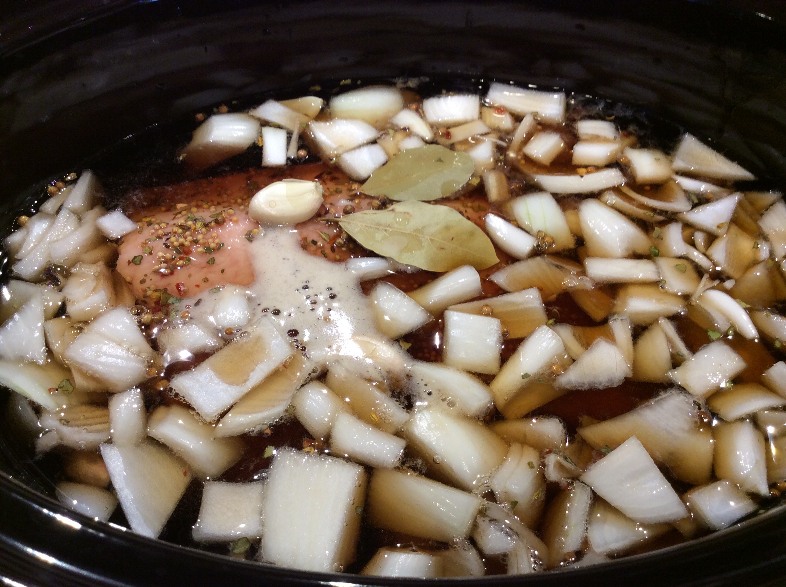 It is one that I have tweaked over the years and I think I have finally got it as close to perfection as possible…(Patting myself on the back now..ha, ha).  The best part about it is that it is prepared in the crockpot so you don’t have to babysit it!  At the end, just pull it out and put it under the broiler for a few minutes so you still get that beautiful crust on the outside.