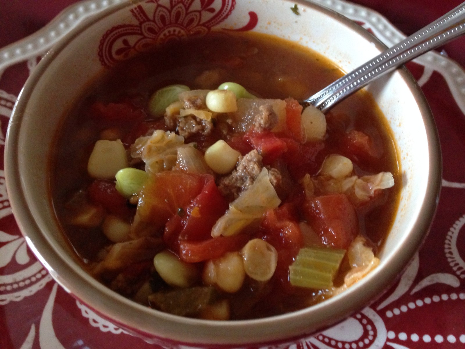 I eat this soup year round…as a matter of fact, if my husband is out of town, it is a must on my menu (except that I substitute one of his least favorite ingredients…ground turkey). Gourmet?…not this soup! Tasty?…very much so! I use lots of shortcuts so I can whip this up quickly and I definitely change it up from time to time so feel free to experiment with your favorite veggies…