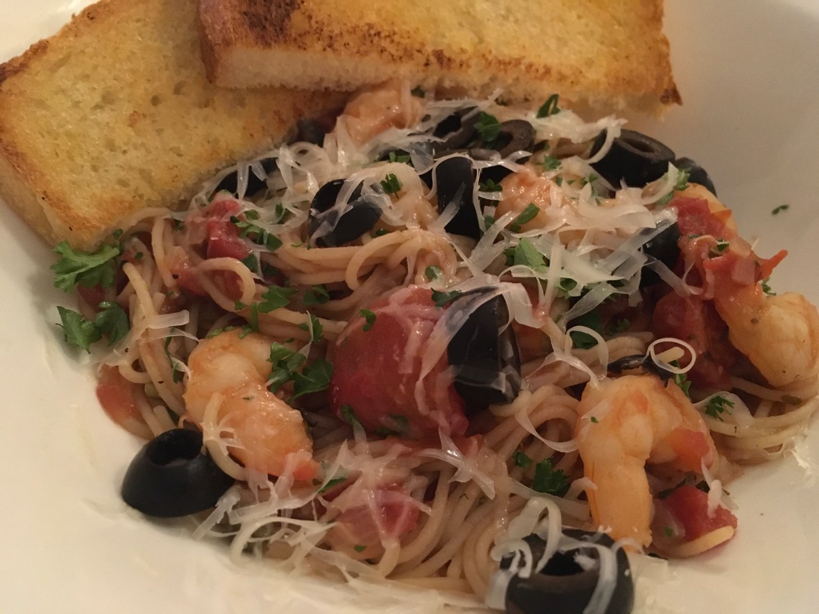 Add in capellini, shrimp, and parsley (and pasta water, if needed); toss until mixture is well coated….