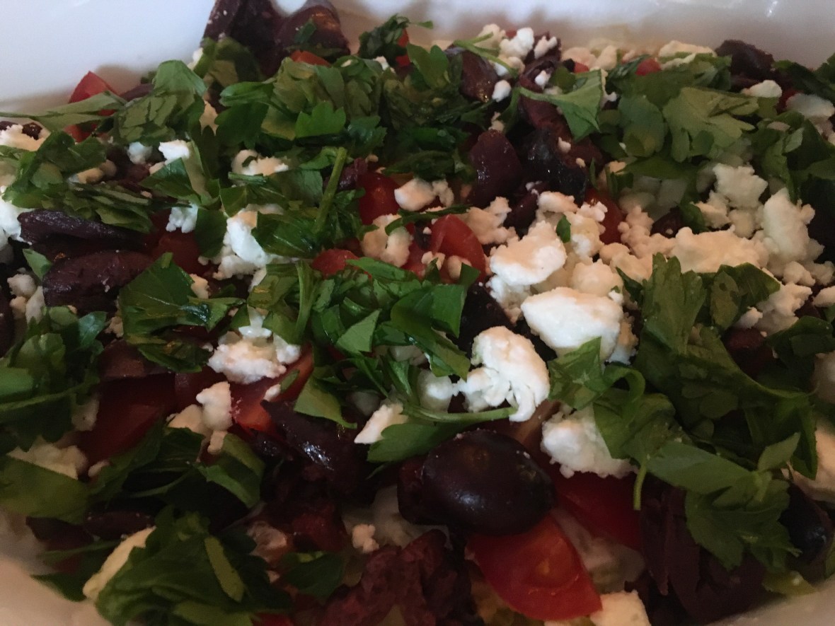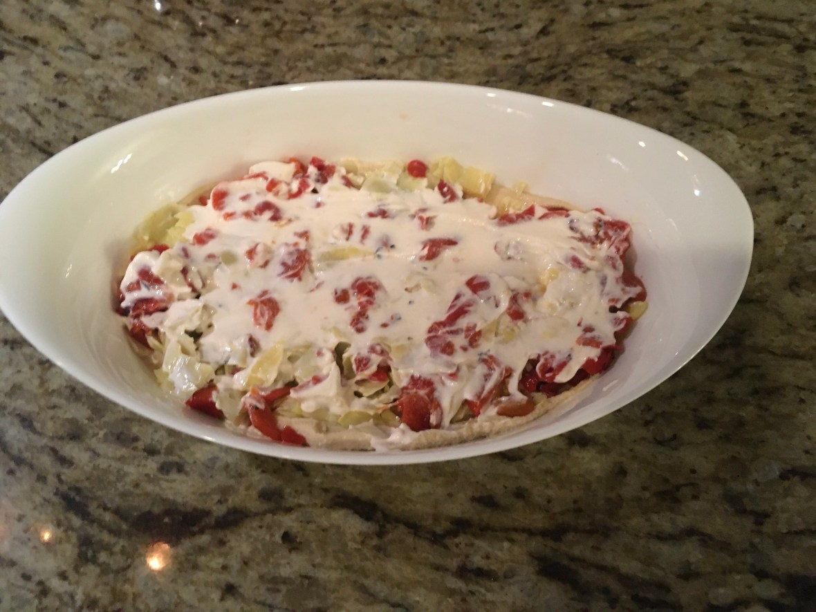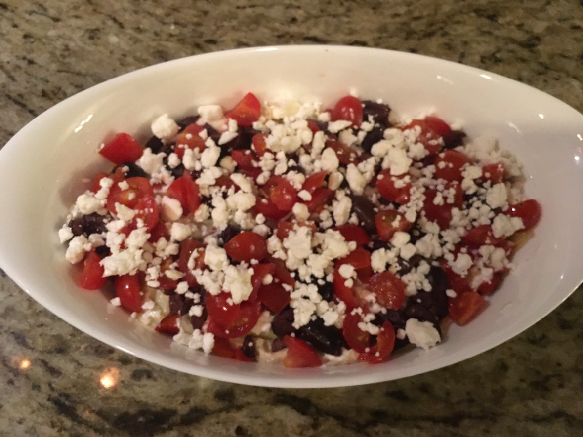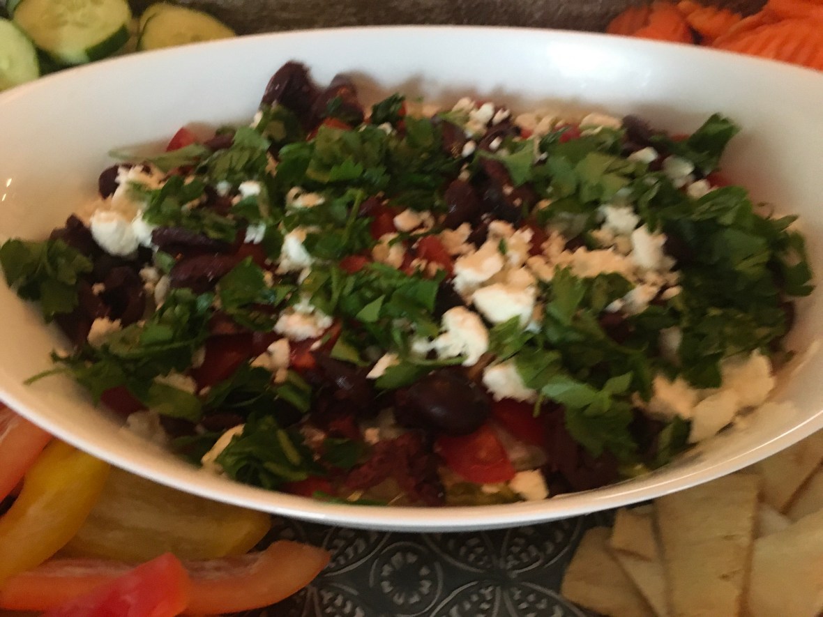 What if we took that famous dip and put a healthy twist on it? Well, I did with my Healthy Layered Mediterranean Dip. Take out those fatty, high calorie refried beans and sour cream and switch it up with hummus and nonfat Greek Yogurt. Throw in some veggies in place of those tortilla chips and not only do you have lighter appetizer, but you are adding in some vegetables that will give you a good dose of your daily fiber and vitamins. Perfect for those that are working on a more plant-based diet, like me! I actually made this dip on a local tv station so here is the link if you want to check it out….
