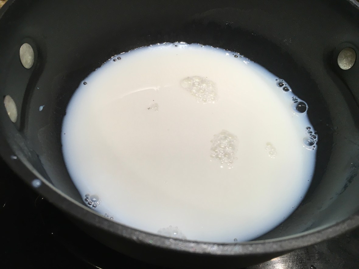 In a small saucepan, heat the milk on medium-low until it starts to steam.